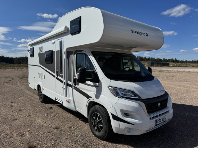 Kuusipaikkainen vuoden 2024 Sunlight A 70 alkovi asuntoauto vuokrattavissa loma- ja työreissuille.